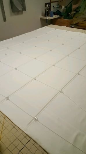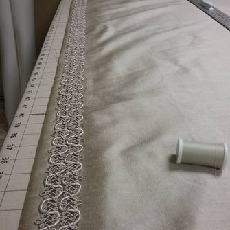 Here is the back of a large roman shade. It's not the pretty side but I love the symmetry and hand sewing of rings. Used Safe-T-Shade rings and ring locks so it is compliant with current safety guidelines. Safe-T-Shade rings and locks are designed to eliminate hazardous loops on your fabric shades thereby making them safer option for your child's room.
