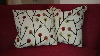 Happy New Year Everyone. Here's a set of accent pillows I completed recently. Love how the colors pop against the red chair.